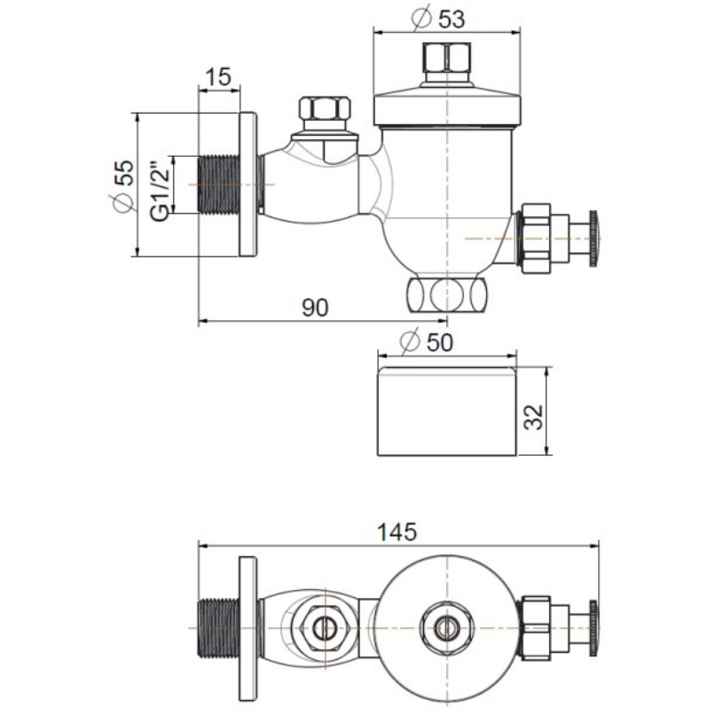 FFAS9802-009500BT0 ฟลัชวาล์วแบบกด สำหรับโถปัสสาวะชาย