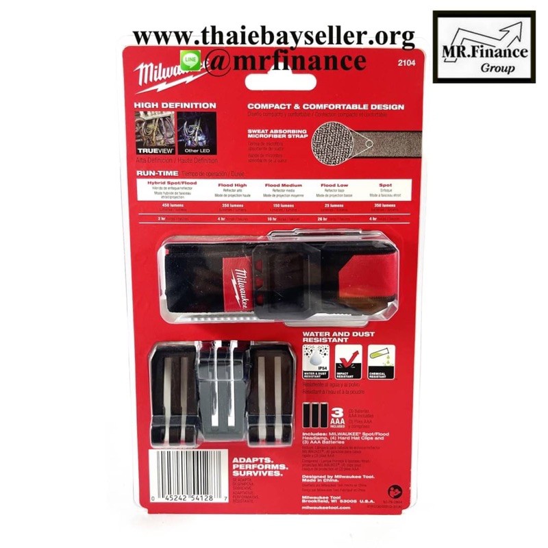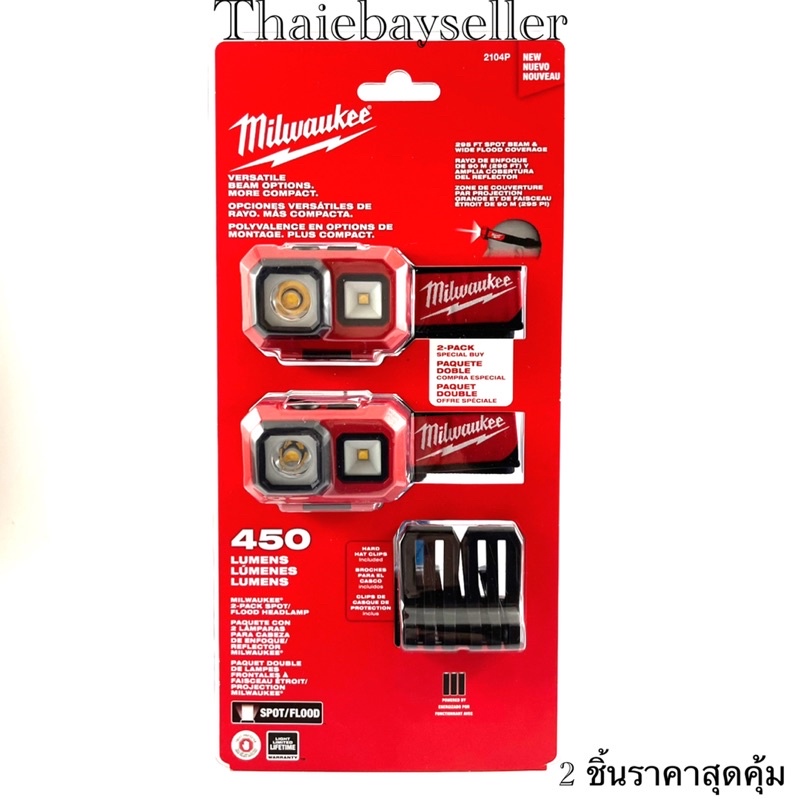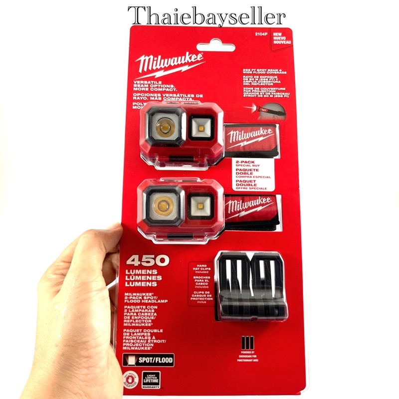 ไฟฉายคาดหัวคุณภาพดี จาก Milwakee (มิววอคกี้) ให้แสงที่สว่าง 450 ลูเมน และไกลถึง 295 ฟุต รุ่นนี้จะใช้ถ่าน AAA x 3 ก้อน สามารถปรับระดับไฟได้จากตัวไฟฉาย 2 ระดับ เปิดปิดแยกกันอย่างอิสระ สะดวกและง่ายดายต่อการใช้