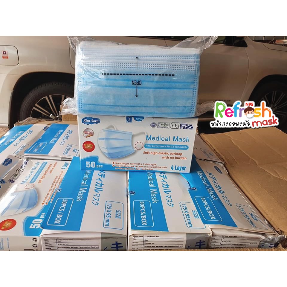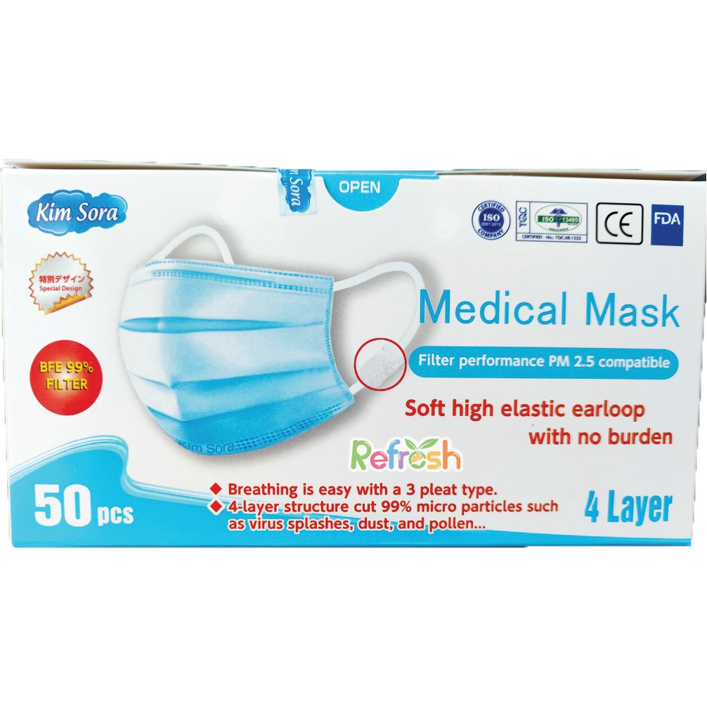 Kim Sora คิมโซระ ฟ้า 4 ชั้น (ญี่ปุ่นแท้ นิ่มหนา) PM2.5 หน้ากากอนามัยญี่ปุน หน้ากากญี่ปุน หน้ากากอนามัยทางการแพทย์
