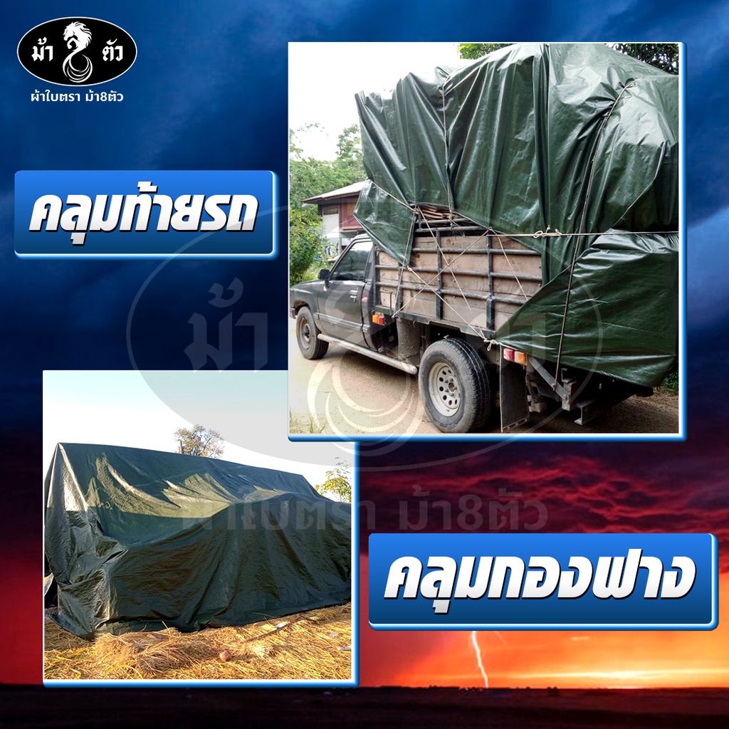 ผ้าใบเอนกประสงค์ทำจากพลาสติก PE เกรดพรีเมี่ยมรุ่นหนาพิเศษ ตราม้า8ตัว