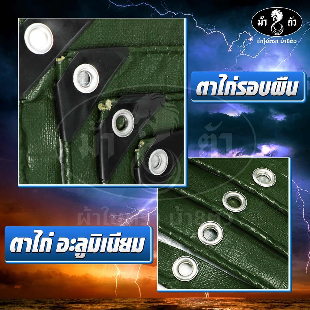 ม้า8ตัว ผ้าใบกันแดดกันฝน PE 4×6 แบบหนา 0.35 มิล ตาไก่รอบผืน 50 cm กันน้ำ100% ปูบ่อ กันสาด หลังคา คลุมรถ คลุมของ ฟลายชีท
