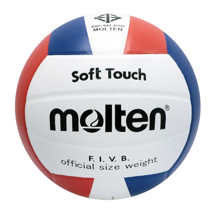 MOLTEN ลูกวอลเลย์บอลหนัง Volleyball PVC V5V-Super2 WH/R/BL (490) แถมฟรี ตาข่ายใส่ลูกฟุตบอล +เข็มสูบลม