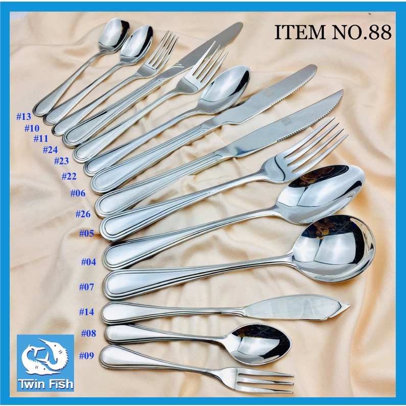 ชุดช้อนส้อมสเตนเลสลาย #ITEM NO. 88 ครบเซ็ท ผลิตจากสเตนเลสอย่างดีเกรด AISI 304 "รับประกันปลอดสนิม" ตลอดอายุการใช้งาน