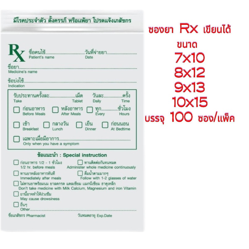 ซองยา RX เขียนได้ ขนาดมาตรฐาน เขียนติดง่าย เนียนเรียบ (100 ซอง/แพ็ค) พร้อมส่งทุกวัน