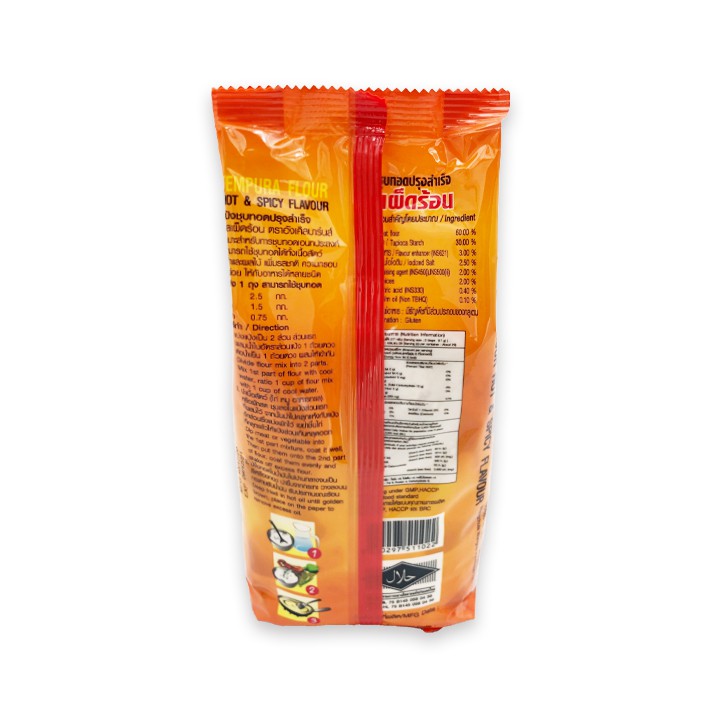 แป้งชุปทอดกรอบปรุงสำเร็จ รสเผ็ดร้อน เหมาะสำหรับการชุบทอดอเนกประสงค์สามารถชุบทอดได้ทั้งเนื้อสัตว์ ผัก และ ผลไม้ เพิ่มรสชาติ ความกรอบอร่อย ให้กับอาหารได้หลายชนิด แป้ง 1 ถุง(1,000 กรัม) สามารถชุบทอด : ไก่ 5 กก. , กุ้ง 3 กก. , ผัก 1.5 กก. วิธีทำ 1. แบ่งแป้งเป