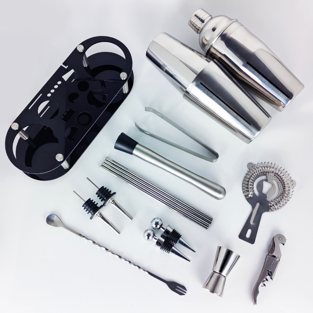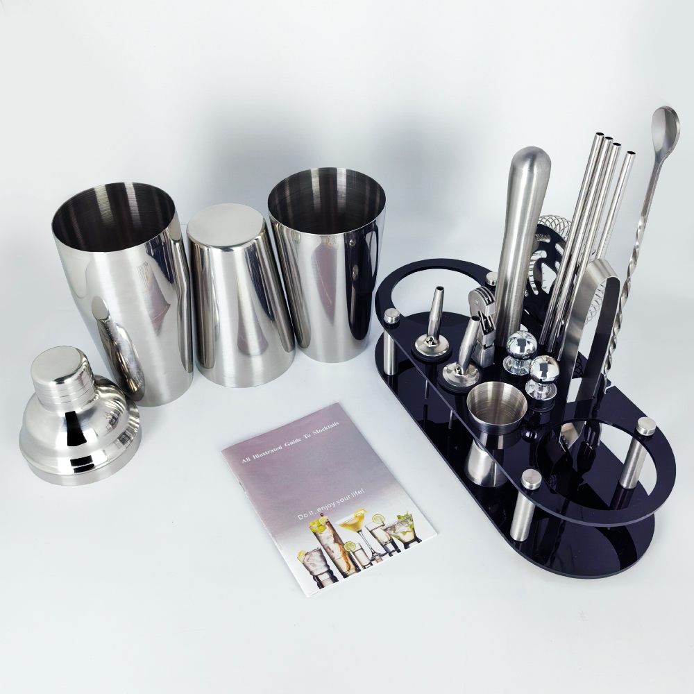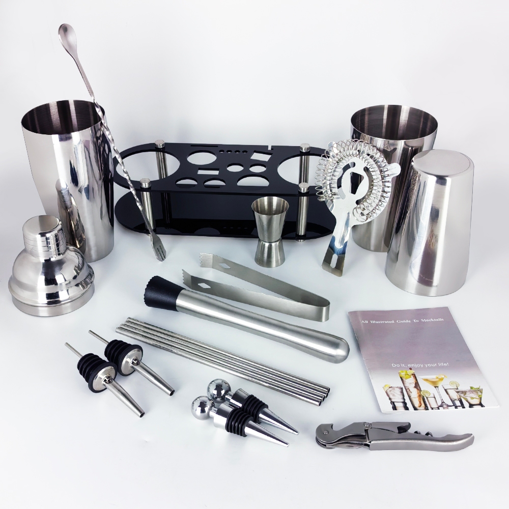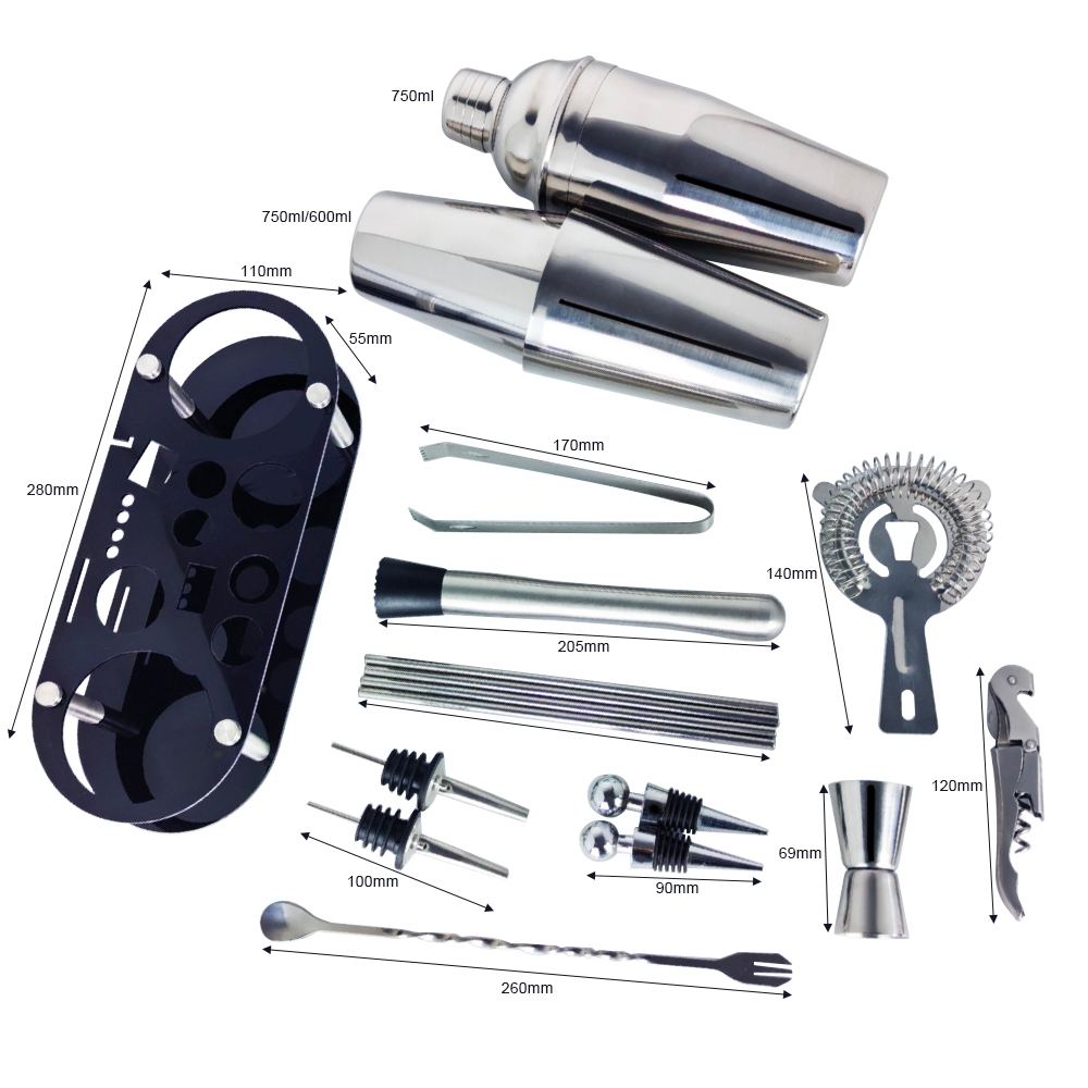 17 ชิ้น/เซ็ตค็อกเทล Shaker ชุด 750ml และ 750/600ml Bartending Kit Bar Shakers เครื่องมือสูตรหนังสือสีดําขาตั้ง