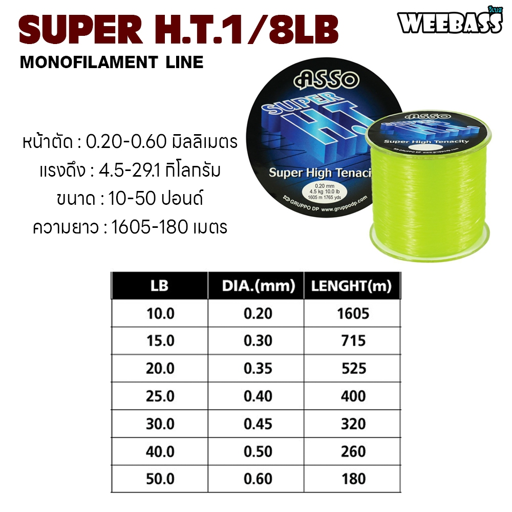WEEBASS สายเอ็น – รุ่น ASSO SUPER H.T.1/8LB CLEAR GREEN (สีเขียว) สายเอ็นโหลด เอ็นตกปลา