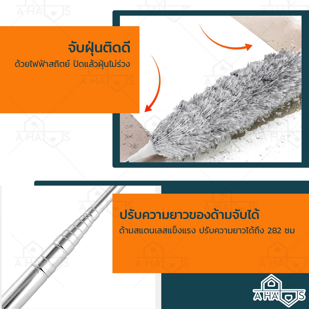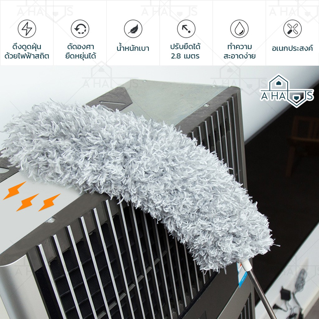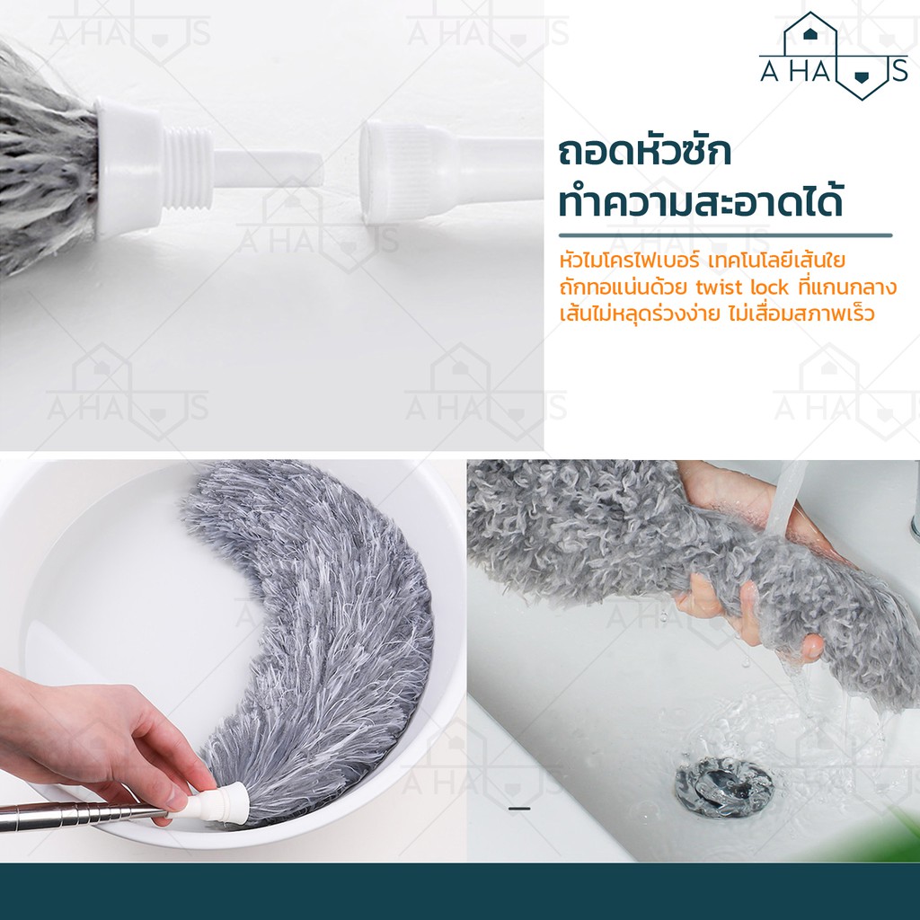 ? ส่งไว ? A HAUS ไม้ปัดฝุ่น ไม้กวาดหยากไย่ ไม้ปัดฝุ่นไมโครไฟเบอร์ ปรับความงอ ปรับยืดได้ 0.8-2.8 ม ซักได้ ดักจับฝุ่นดี