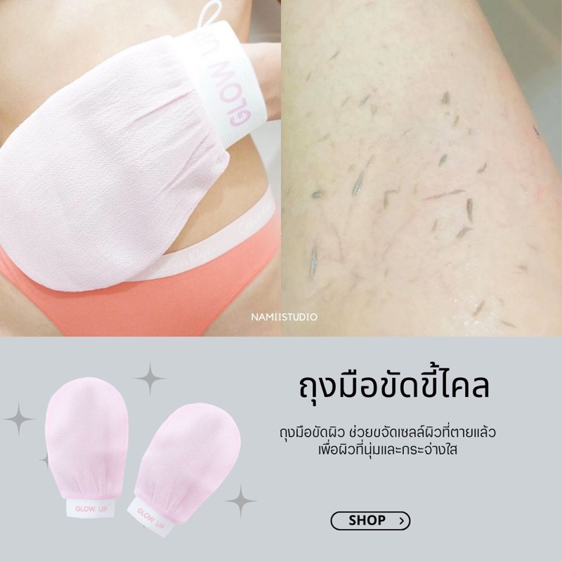 ถุงมือขัดผิว Glow up ของแท้ 100% พร้อมส่ง