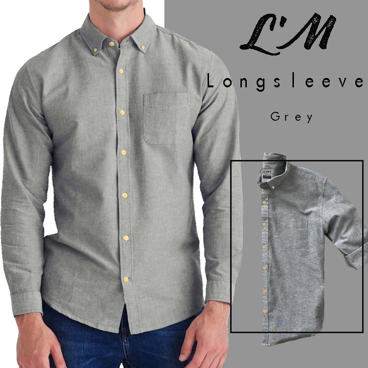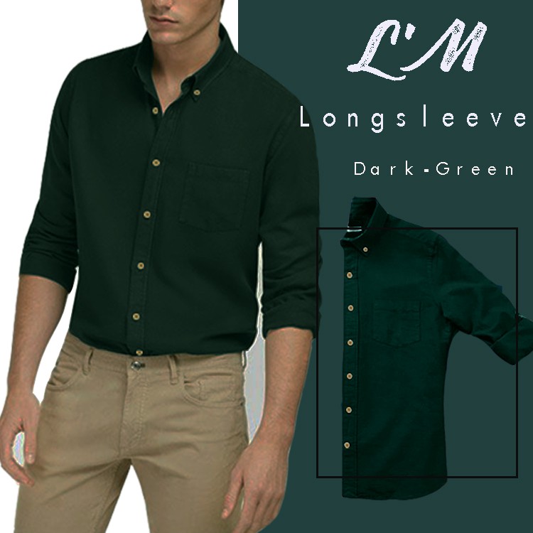 L’M Men’s style เสื้อเชิ้ตผู้ชายแขนยาว เสื้อเชิ้ตสีพื้น ผ้าcotton คอตตอน คอปก 4 สี สีเบจ สีเลือดหมุ สีเทา สีเขียวเข้ม
