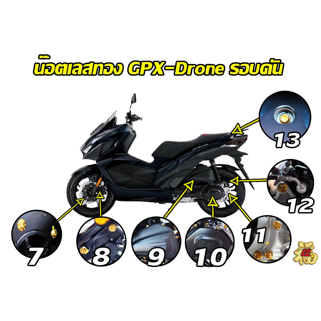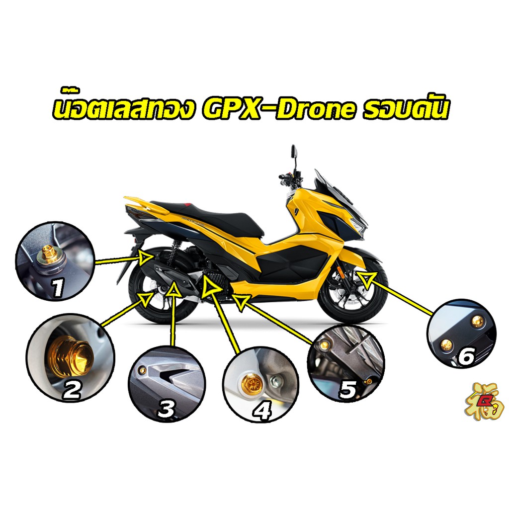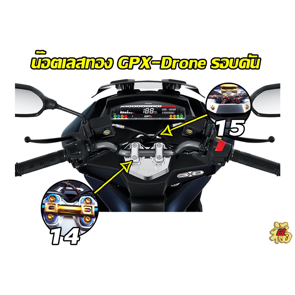 6.น็อตกันร้อนท่อ บังท่อ2ตัว GPX DRONE150 น็อตสแตนเลส ทองและไทเท NEW!! **