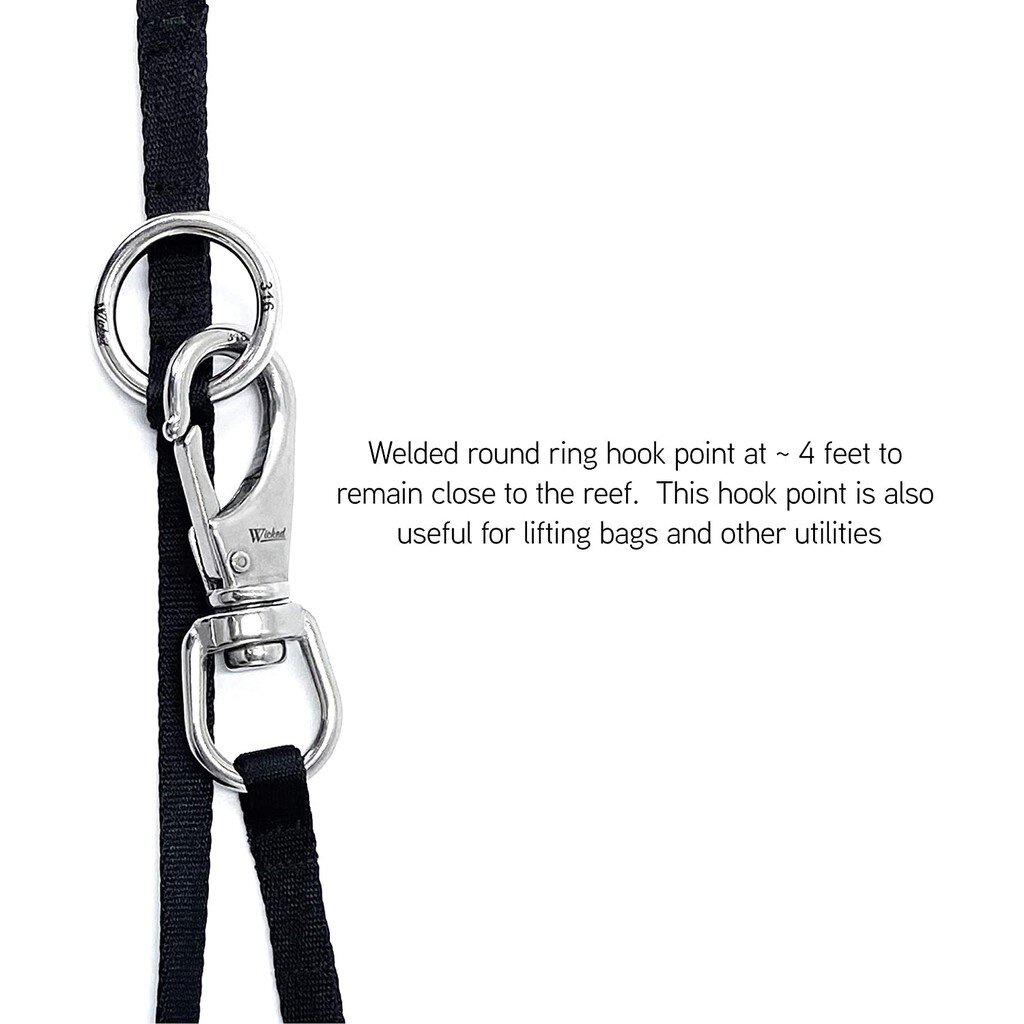 WICKED – Scuba Reef Hook, Stainless Steel 316, Length 4-6 Ft. รีฟ ฮุค พร้อมขอเกี่ยว และกระเป๋าเก็บ ใช้ง่าย