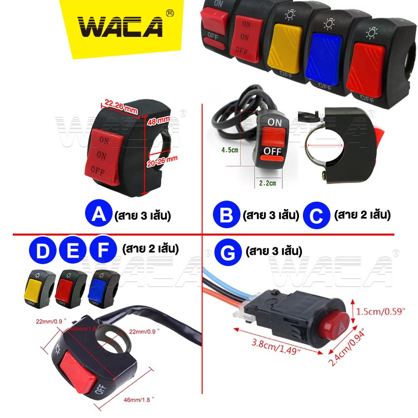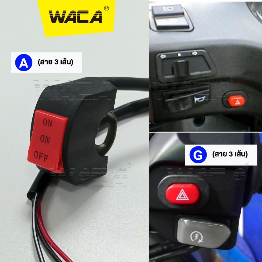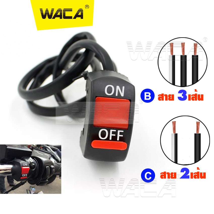 WACA สวิทซ์มอเตอร์ไซค์ ออฟรัน สวิทซ์ OFF RUN เปิด-ปิด สวิสท์ไฟผ่าหมาก ไฟ LED สาย 2เส้น, 3เส้น(1ชิ้น) รุ่นS91 S92 S93 193