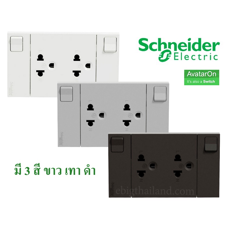Schneider ใหม่! ชุดเต้ารับคู่ 3 ขา พร้อมม่านนิรภัยมีสวิตช์ควบคุม พร้อมหน้ากาก AvatarON A