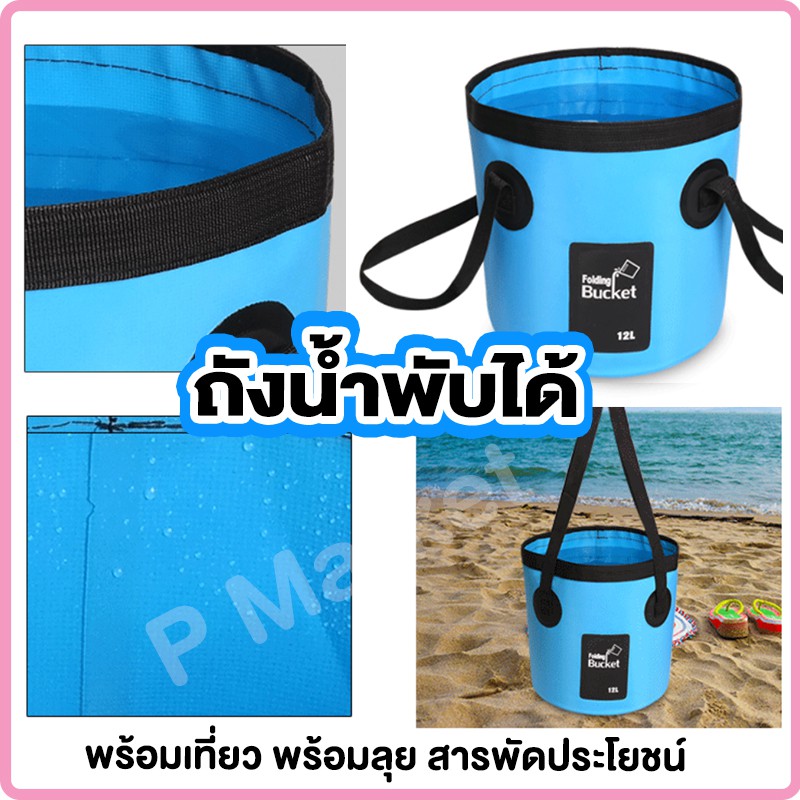 ถังน้ำพับได้ ถังใส่น้ำแบบพกพา ล้างรถ ตกปลา ล้างรถ ซักผ้า แช่เท้า ถุงใส่น้ำ ถุงกันน้ำ กระเป๋ากันน้ำ