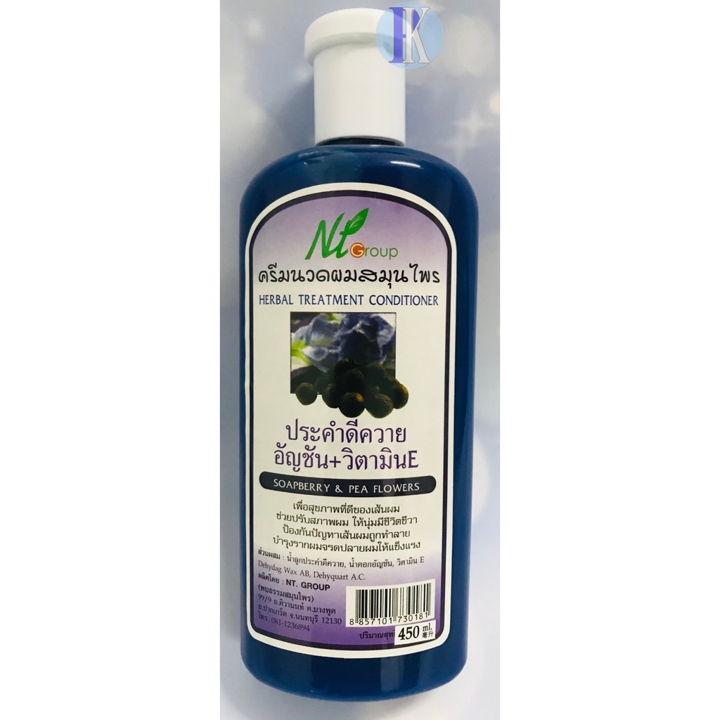แชมพูสมุนไพรและครีมนวด ประคำดีควาย+อัญชัน+วิตามินอี NT Groupขนาด 450ml