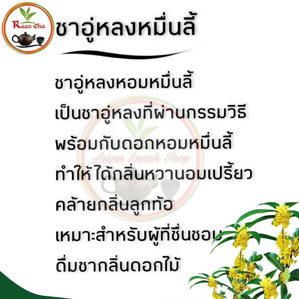 # ชาอู่หลงหอมหมื่นลี้ เป็นชาอู่หลงที่ผ่านกรรมวิธีสีพร้อมกับดอกหอมหมื่นลี้ทำให้กลิ่นหอมหวานอมเปรี้ยวคล้ายกลิ่นลูกท้อ เหมาะสำหรับ ผู้ชื่นชอบชากลิ่นหอมดอกไม้