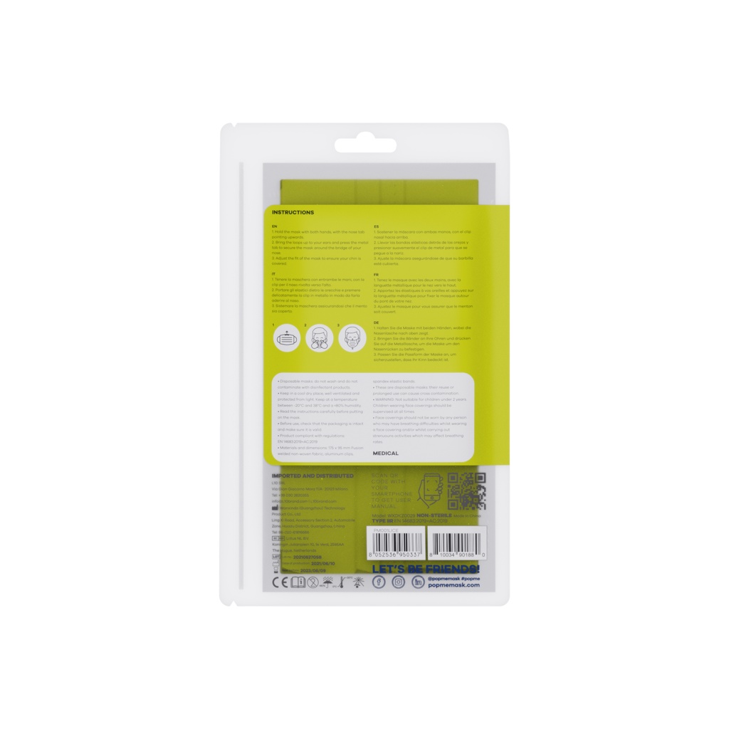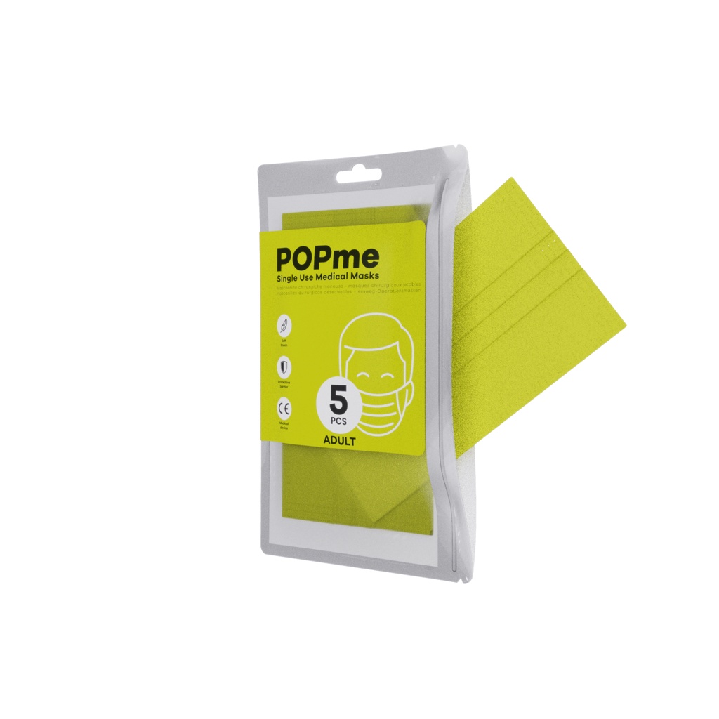 พร้อมส่ง POPme Mask ของแท้ นำเข้าจากอิตาลี (1 ซอง 5 ชิ้น) | หน้ากากอนามัยสีเขียว สะท้อนแสง