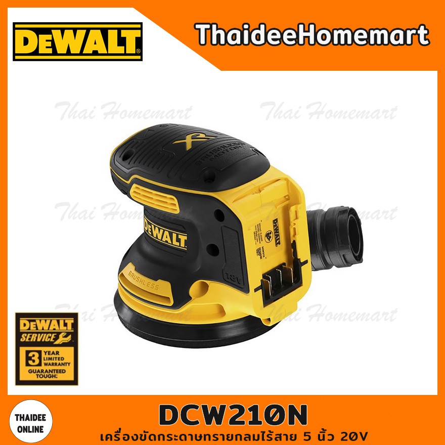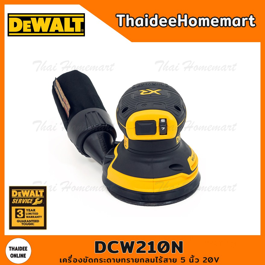 DEWALT เครื่องขัดกระดาษทรายกลมไร้สาย 5 นิ้ว 20V รุ่น DCW210N (ตัวเปล่าไม่รวมแบตฯ) รับประกันศูนย์ 3 ปี