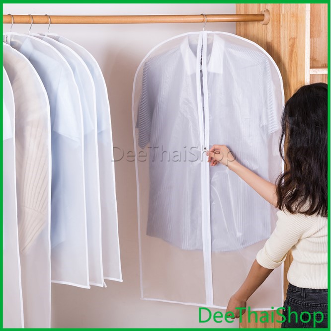 DeeThai ถุงคลุมเสื้อผ้า ถุงใส่สูท สีขาวขุ่น สำหรับกันฝุ่นเกาะเสื้อผ้า Cloth Protect Cover