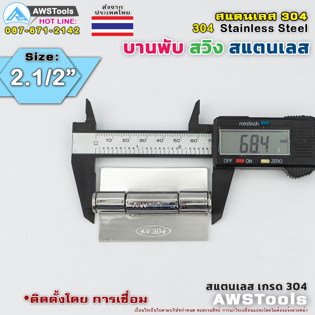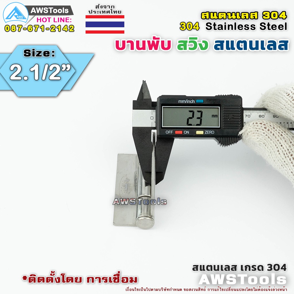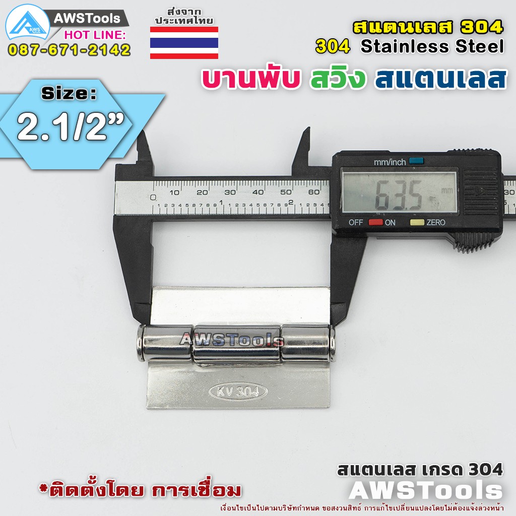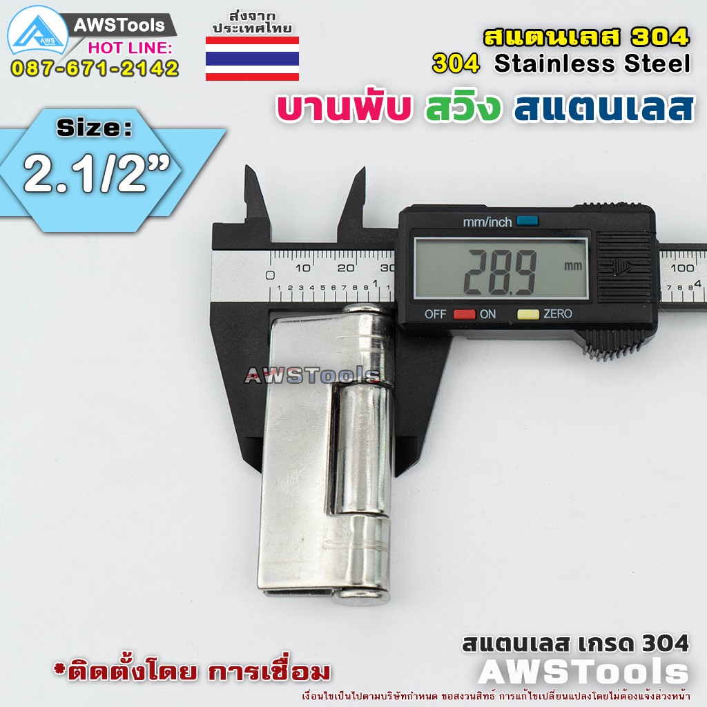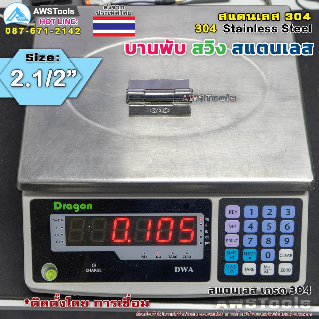 บานพับประตู ขนาด 2.1/2″ บานสวิง ผลิตจาก สแตนเลส เกรด 304
