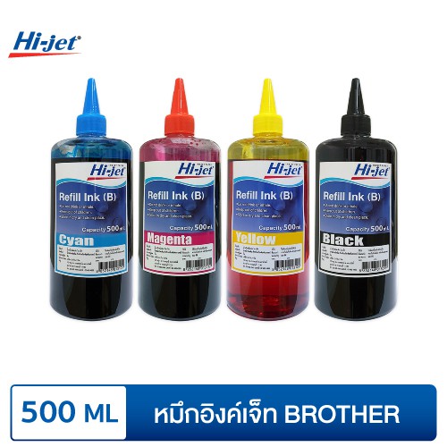 Hi-jet หมึกเติม Inkjet Refill Ink สำหรับแบรนด์ Brother (บราเธอร์) 500 ml. (เลือกสีได้) หมึกเติมเกรดพรีเมียม