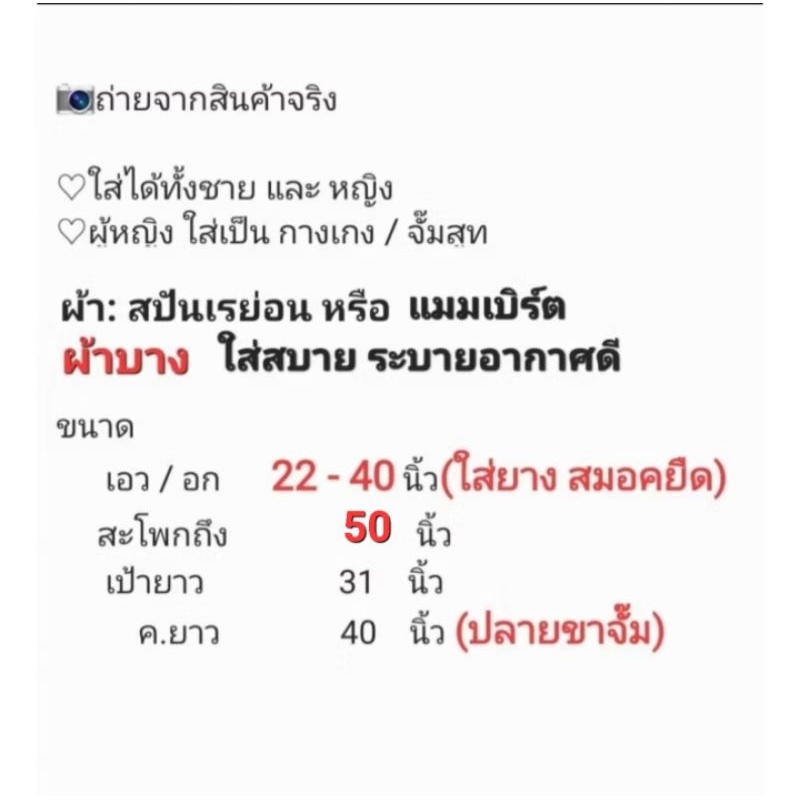 เอว / อก 22 - 40 นิ้ว (ใส่ยาง สมอคยืด)