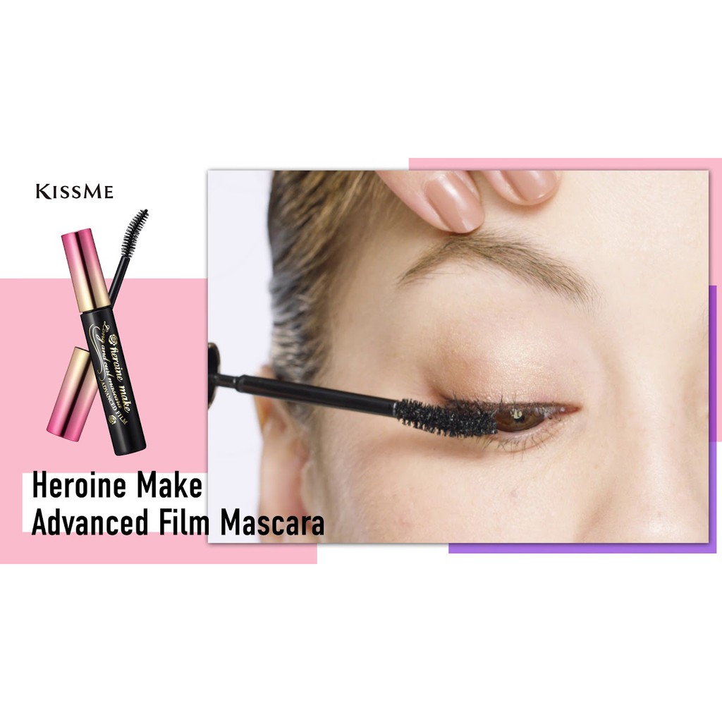 Kiss Me Heroine MakeSuper Water Proof Long & Curl Advanced Film - สูตรกันน้ำและกันเหงื่อ แต่ล้างออกง่ายเพียงใช้สบู่หรือโฟมล้างหน้าหรือเมคอัพรีมูฟเวอร์ - เหมาะสำหรับเป็น everyday use - เนื้อมาสคาร่าผสานไฟเบอร์ที่ช่วยต่อขนตาให้ยาวขึ้นถึง 5 mm ล็อคขนตาให้สว