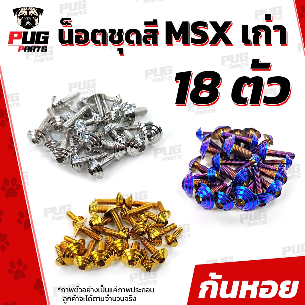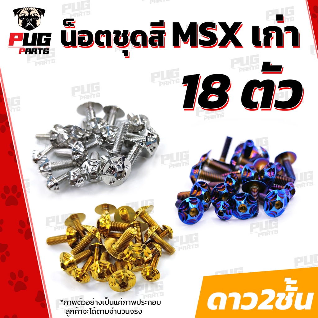 น็อตชุดสีMSXตัวเก่า(1ชุด=18 ตัว) น๊อตชุดสีเอ็มเอสเอ็ก ตัวเก่า น็อตMSX น็อตแตนเลส น็อตเฟรมMSXเก่า น็อตMSX เก่า (MSX)