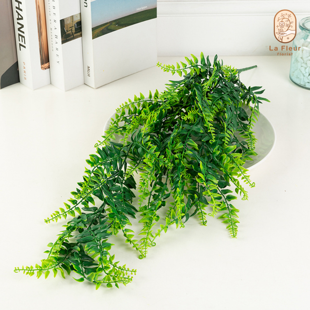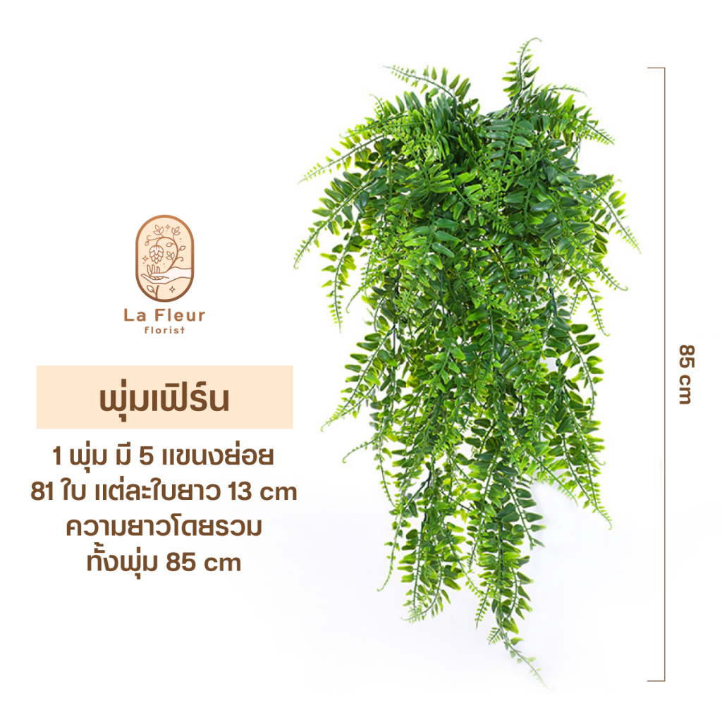 พุ่มเฟิร์นประดิษฐ์ พุ่มไม้เลื้อยประดิษฐ์ พุ่มใบไม้ประดิษ์ฐ์ พวงไม้เลื้อย ยาวหนา 5 แขนงย่อย 81 ใบ ใบยาว 13 ซม. ตกแต่งผนัง ตกแต่งกำแพง ตกแต่งสวน