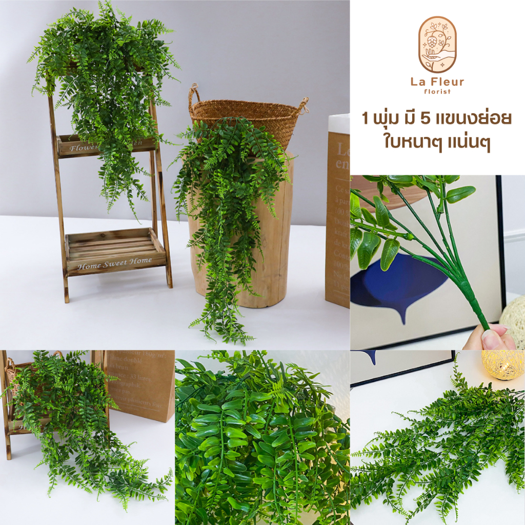 พุ่มเฟิร์นประดิษฐ์ พุ่มไม้เลื้อยประดิษฐ์ พุ่มใบไม้ประดิษ์ฐ์ พวงไม้เลื้อย ยาวหนา 5 แขนงย่อย 81 ใบ ตกแต่งผนัง ตกแต่งบ้าน